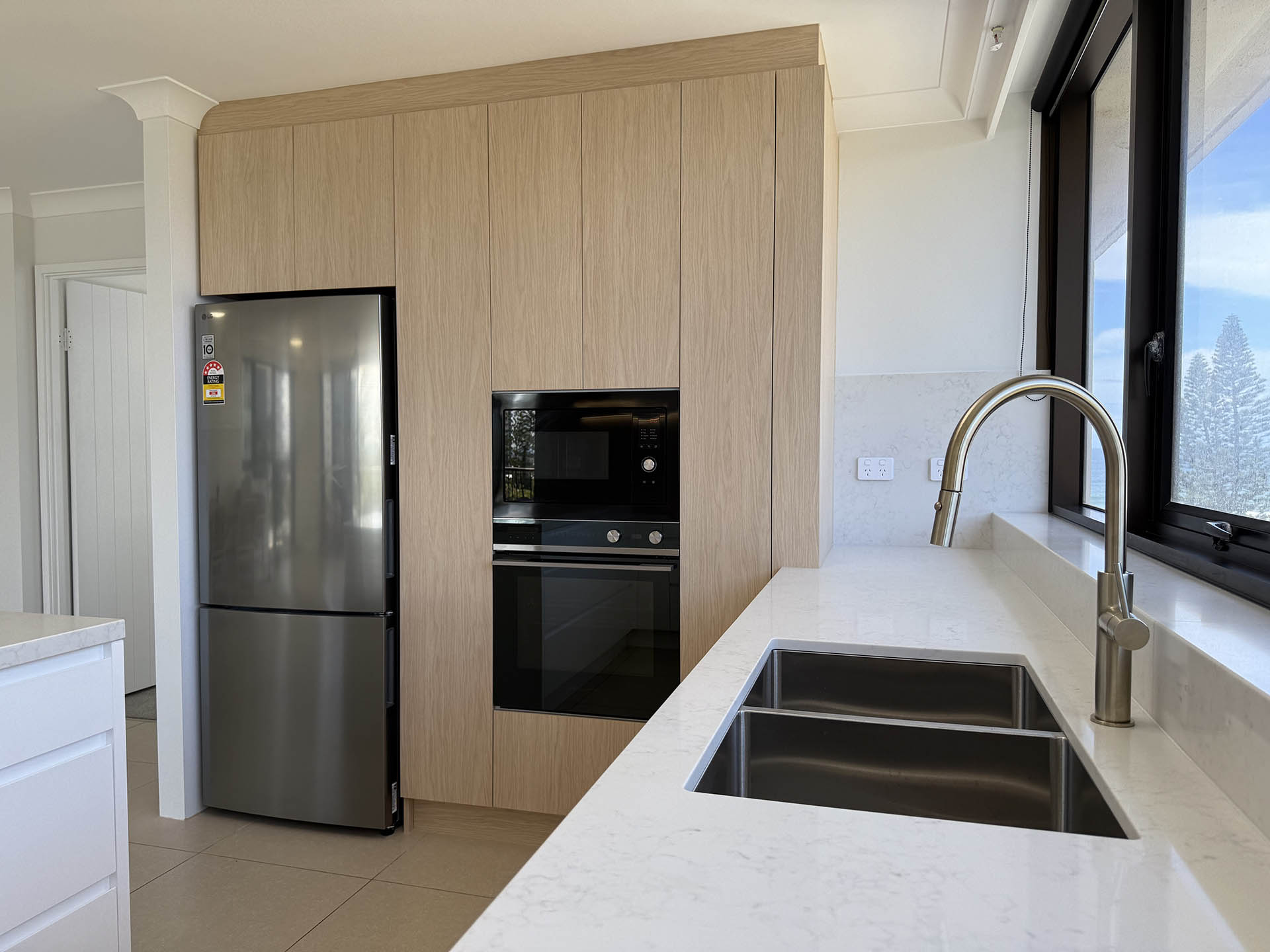 This 2-bedroom Surfers Paradise apartment was renewed as a summer retreat for a semi-retired farming family. Raw Built Construction, the trusted apartment renovation contractor, carried out a full apartment remodelling based on the designer’s plans. The project upgraded tired interiors throughout, including the kitchen, bathrooms, laundry and storage, while retaining the existing layout. The result is a durable, modern style apartment with thoughtful detailing, perfectly suited for relaxed family stays.